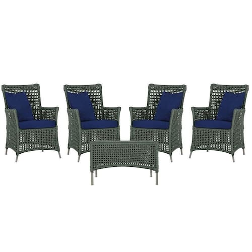 4 Poltronas E 1 Mesa Igapó Alumínio Fendi Corda Náutica E10 Verde