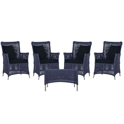 4 Poltronas E 1 Mesa Igapó Alumínio Fendi Corda Náutica E12 Azul