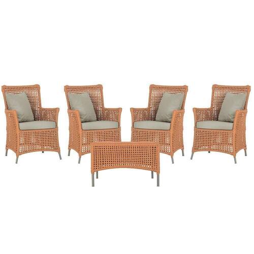 4 Poltronas E 1 Mesa Igapó Alumínio Fendi Corda Náutica E7 Terra Cota - Blush