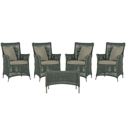 4 Poltronas E 1 Mesa Igapó Alumínio Fendi Corda Náutica E8 Verde