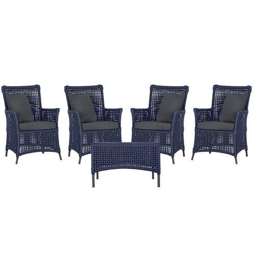 4 Poltronas E 1 Mesa Igapó Alumínio Marrom Corda Náutica E11 Azul