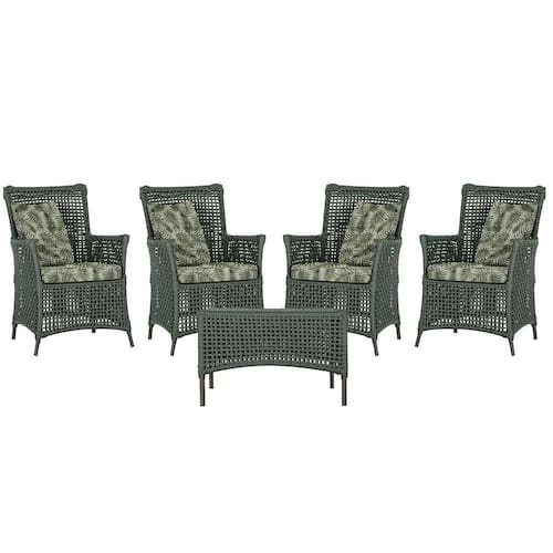 4 Poltronas E 1 Mesa Igapó Alumínio Marrom Corda Náutica E5 Verde