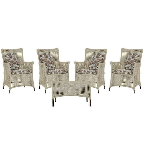 4 Poltronas E 1 Mesa Igapó Alumínio Marrom Corda Náutica E6 Rami