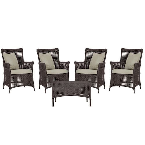 4 Poltronas E 1 Mesa Igapó Alumínio Marrom Corda Náutica E7 Marrom