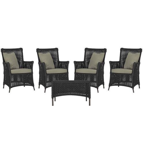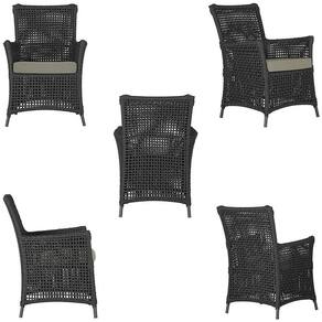 4 Poltronas E 1 Mesa Igapó Alumínio Marrom Corda Náutica E8 Preto