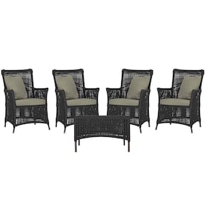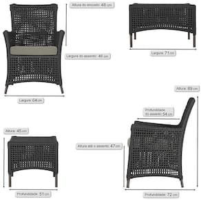4 Poltronas E 1 Mesa Igapó Alumínio Marrom Corda Náutica E8 Preto