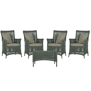 4 Poltronas E 1 Mesa Igapó Alumínio Marrom Corda Náutica E8 Verde