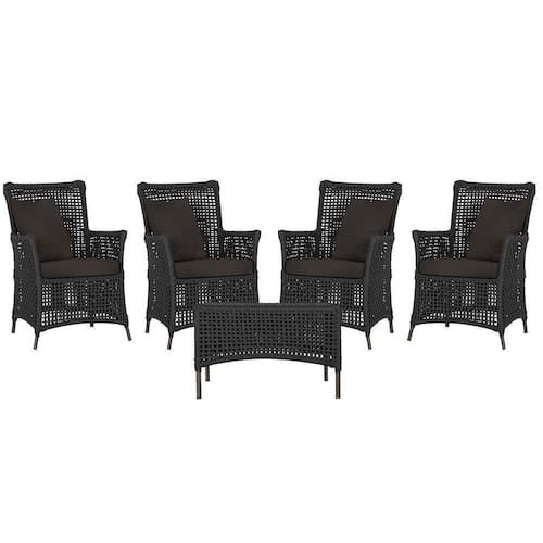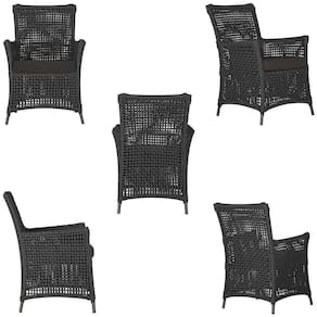 4 Poltronas E 1 Mesa Igapó Alumínio Marrom Corda Náutica E9 Preto