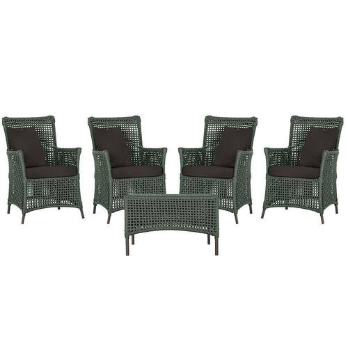4 Poltronas E 1 Mesa Igapó Alumínio Marrom Corda Náutica E9 Verde