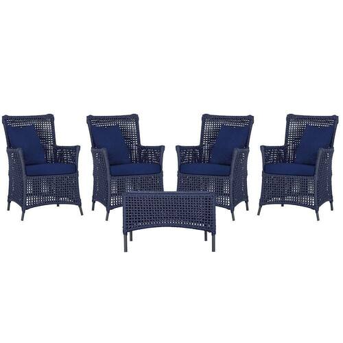 4 Poltronas E 1 Mesa Igapó Alumínio Preta Corda Náutica E10 Azul