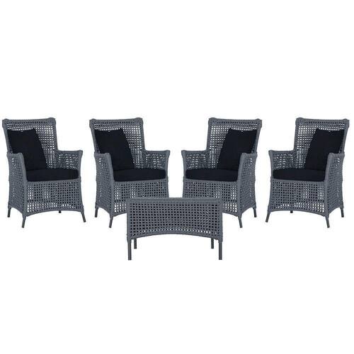 Itens Inclusos: 04 Poltronas e 01 Mesa Igapo em Aluminio Pintura Preta Corda Nautica Estofado 12