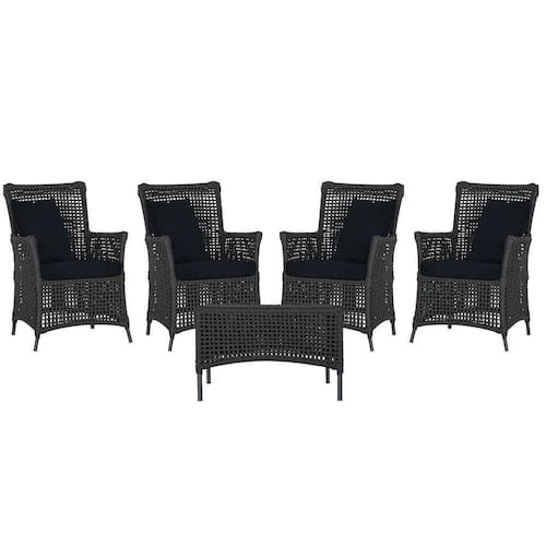 4 Poltronas E 1 Mesa Igapó Alumínio Preta Corda Náutica E12 Preto
