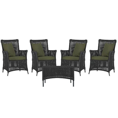 4 Poltronas E 1 Mesa Igapó Alumínio Preta Corda Náutica E13 Preto