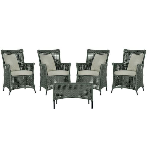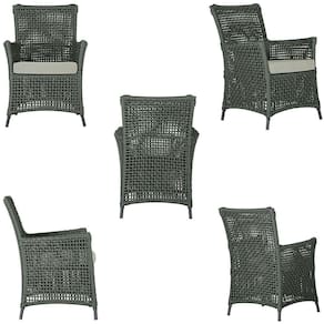 4 Poltronas E 1 Mesa Igapó Alumínio Preta Corda Náutica E3 Verde