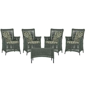 4 Poltronas E 1 Mesa Igapó Alumínio Preta Corda Náutica E5 Verde