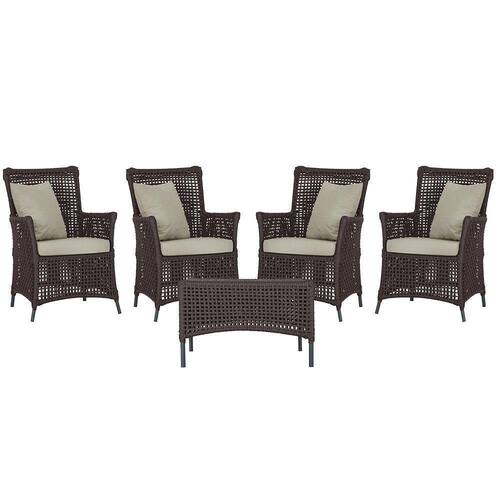 4 Poltronas E 1 Mesa Igapó Alumínio Preta Corda Náutica E7 Marrom