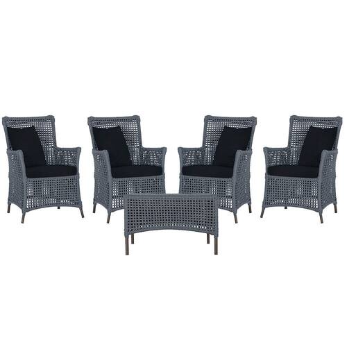 Itens Inclusos: 04 Poltronas e 01 Mesa Igapó em Alumínio Pintura Marrom Corda Náutica Estofado 12