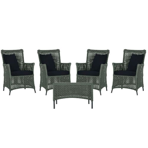 Itens Inclusos: 04 Poltronas e 01 Mesa Igapó em Alumínio Pintura Preta Corda Náutica Estofado 12