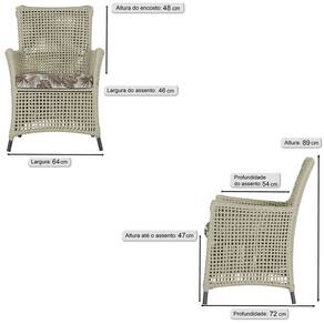4 Poltronas e 1 Mesa Igapó em Alumínio Pintura Preta Corda Náutica Estofado 6 - Bege