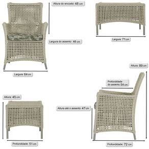 4 Poltronas e 1 Mesa Igapó em Alumínio - Bege