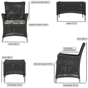 4 Poltronas e 1 Mesa Igapó em Alumínio - Preto