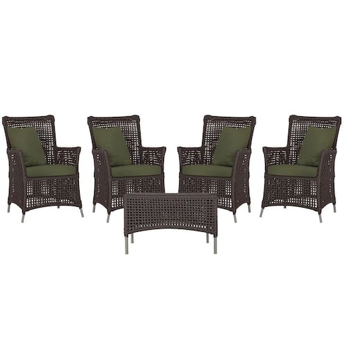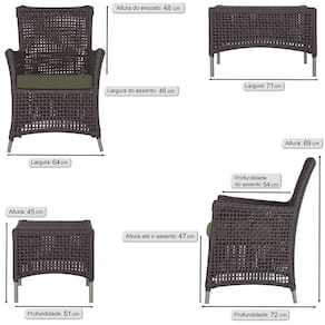 4 Poltronas e 1 Mesa Igapó em Alumínio - Marrom Escuro