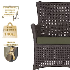 Itens Inclusos: 02 Poltronas e 01 Mesa Igapó em Alumínio Pintura Marrom Corda Náutica Estofado 6