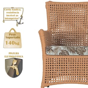 A corda náutica adiciona um toque de rusticidade moderna, enquanto o estofado impermeável garante que sua poltrona esteja sempre impecável, mesmo após uma chuva inesperada ou um acidente com líquidos.