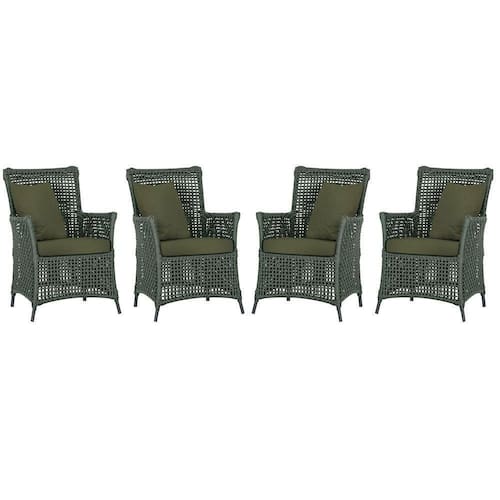 4 Poltronas Igapó Alumínio Pintura Preta Corda Náutica E13 Verde