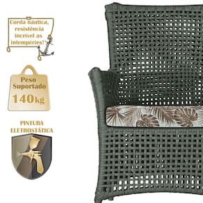 A corda náutica adiciona um toque de rusticidade moderna, enquanto o estofado impermeável garante que sua poltrona esteja sempre impecável, mesmo após uma chuva inesperada ou um acidente com líquidos.
