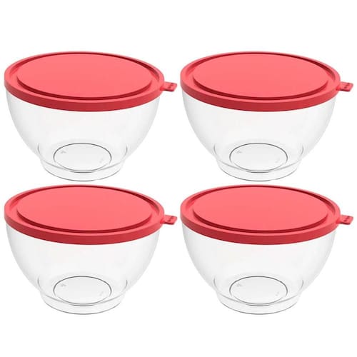 4 Potes com Tampa 3,1L Redondo Crippa Transparente e Vermelho Bacia Alimentos Frutas