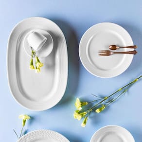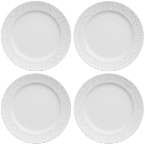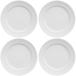 4 Pratos de Sobremesa 21cm em Porcelana com Relevo Chevron Germer Branco Redondo.