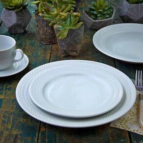 Garantia: 90 dias / Peso total: 2,048kg / Cor predominante: branco / Ref: 7798139734295; Dimensões de cada prato: 21cm (D) x 2cm (A); Diâmetro interno de cada prato: 14cm; Material: porcelana; Formato: redondo; Tipo: sobremesa; Conteúdo: 4 pratos de sobremesa.