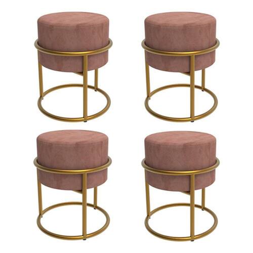 4 Puff De Ferro, Banqueta, Mesa Design Moderno Lançamento - Rosa