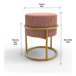 - Atingindo cerca de 45 cm de altura, a armação possui um diâmetro de aproximadamente 40 cm, enquanto o estofado abrange cerca de 37 cm de diâmetro.