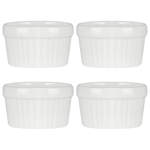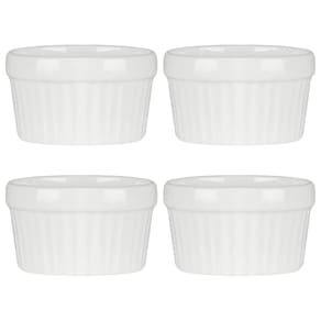 4 Ramekin de Porcelana Classic Branco 6cm x 4cm Lyor Sirva seus molhos e suas sobremesas com muito mais estilo com o Ramequim de Porcelana Esse lindo ramequim é feito todo em porcelana branca, com o tradicional relevo de listras verticais dessas peças. Com esse lindo Ramequim de Porcelana Branca as suas refeições ficam ainda mais chiques e apetitosas