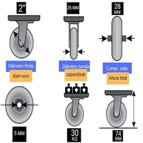 Diâmetro da roda (pol): 2 polegadas - 50.8 mm