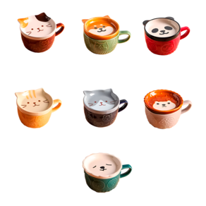 4 Un. Caneca De Bichinhos Com Tampa Cerâmica Diversão Café