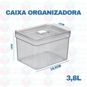 CAIXA ORGANIZADORA QUADRADA ALTA - 13 X 18,5 X 14 C/ TAMPA 3,8 LTS A caixa organizadora é o novo padrão de transparência na organização da sua geladeira. Empilhe, encaixe e enxergue facilmente na geladeira, mantendo tudo em ordem. Seu design foi pensado para promover frescor prolongado para alimentos como: fruta, saladas, verduras e legumes, mantendo uma rotina sem desperdícios. Além da super transparência, beleza e cuidado com o alimento, perfeitas para auxiliar na organização da sua geladeira e facilitar o seu dia a dia. Produzido em material resistente, super transparência, beleza e cuidado com o alimento são características da linha, perfeitas para auxiliar na organização da sua geladeira e facilitar o seu dia a dia.