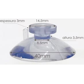 - Unidades no Kit: 4 peças- Ventosa de 40mm (4cm) de PVC- Produzidas em PVC Cristal, garantem boa fixação em superfícies lisas e não porosas- Adequado para utilizar em display e entre o vidro e a base da mesa, evitando o deslocamento do vidro- Cor: Transparente (incolor)- Diâmetro total da ventosa: 40mm (4cm) - Largura da cabeça da ventosa: 1,5 cm - Altura da cabeça da ventosa: 0,6 cm - Altura total da ventosa: 0,7 cm ( instalada) - Diâmetro do buraco na parte superior da cabeça da ventosa: 0,3 cm Marca: H Plásticos