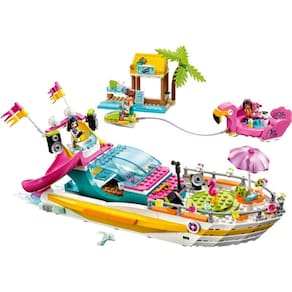 Descrição do Produto: A Andrea está celebrando o verão com grande estilo em uma festa a bordo do barco! Ela entretém os convidados enquanto eles dançam na pista de dança rotativa. O Ethan está puxando a Emma em um gigante flamingo inflável, e a diversão não para por aí. O conjunto inclui também uma mota de água alugada na cabana da praia. Quando a festa terminar, é só levantar o para-brisa e ajudar a Andrea a se aconchegar na cabine, onde ela pode pegar uma bebida do frigorífico antes de ir dormir. Certificações no Brasil: Este produto possui a certificação de segurança compulsória pelo INMETRO, garantindo sua qualidade e segurança. Marca: Não Informado
