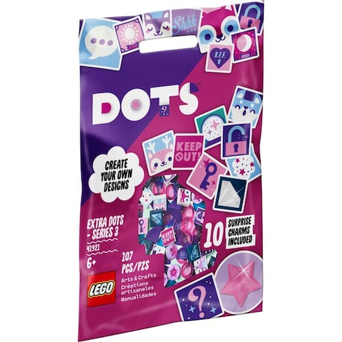 O Kit de Construção LEGO® Dots Extra - Série 3 (41921) é perfeito para os pequenos fãs que adoram personalizar e criar. Vamos explorar o que torna esse conjunto especial: Número de Peças: 107 Idade Recomendada: A partir de 6 anosO que está dentro desse misterioso saquinho Bem, é parte da diversão! Aqui estão os detalhes: Peças Decorativas Coloridas: São 81 peças colecionáveis em 4 cores diferentes. Elas incluem estrelas e diamantes com efeito 3D, perfeitas para dar um toque especial a pulseiras, objetos de decoração ou qualquer criação que a imaginação permitir. 10 Peças Supersecretas: Essas são as verdadeiras estrelas do conjunto. Elas vêm em 16 possíveis designs secretos, e você só descobre quais são quando abre o saquinho. Uma surpresa criativa para estimular a curiosidade!A melhor parte Essas peças funcionam com todos os outros conjuntos LEGO® Dots. Isso significa que você pode misturá-las e combiná-las para criar padrões únicos, expressar seu estilo e personalizar suas criações. Seja uma pulseira, um porta-lápis ou até mesmo um quadro decorativo, a imaginação é o limite! ?Então, se você tem um pequeno artista em casa, esse saquinho de LEGO® Dots Extra - Série 3 é uma ótima escolha. É uma surpresa divertida para presentear ou para complementar outros conjuntos Dots. E lembre-se: a criatividade não tem limites quando se trata de LEGO®! Marca: Não Informado