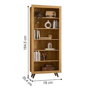 Feito em MDP 15mm, possui seis prateleiras móveis, pés com design retrô .