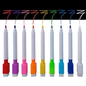 As canetas podem ser usadas em quadro preto, em vidros e em outras superfícies lisas, na ponta da tampa encontra-se uma espuma para apagar e na lateral um imã que permite que grudem em superfícies metálicas.