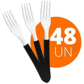 OBS: Veja na descrição os itens que acompanham o jogo. COMPONENTES DO KIT: - 48 Garfo de Mesa Leme com Lâmina em Aço Inox e Cabo de Polipropileno Preto - Tramontina 23182400 : 90 dias para vícios ou defeitos de fabricação - Ideal para Restaurante, Lancheria, Padaria, Linha Doméstica, Residência, Gourmet; - O Garfo de Mesa Tramontina Leme com Lâmina em Aço Inox e Cabo de Polipropileno Preto é perfeito para deixar a sua mesa ainda mais elegante. - A lâmina é produzida em aço inox oferecendo maior durabilidade e ainda conta com cabo em polipropileno na cor preta proporcionando mais resistência. - Charme e delicadeza é com a Tramontina - A lâmina de aço inox garante maior resistência devido a espessura do aço e a estampagem da lâmina. - O cabo de polipropileno possui maior resistência e durabilidade. - Pode ir à máquina de lavar louças facilitando seu dia a dia. - Peso Líquido: 0,021 kg. - Peso Bruto: 0,025 kg. - Dimensões Produto: 13cm A x 23cm L x 18,5cm P. Marca: Não Informado