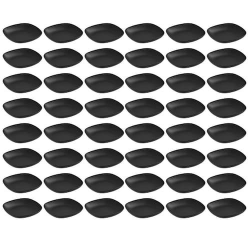 Garantia: 90 dias / Peso de cada: 88g / Cor predominante: preto / Referência: 7794462603147; Dimensões de cada: 17,2cm (C) x 17,2cm (L) x 2,7cm (A); Conteúdo: 48 pratos para sobremesa; Material: polipropileno.