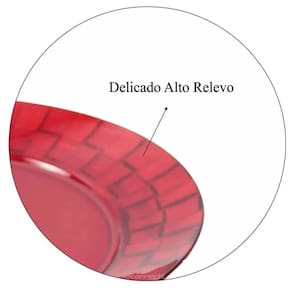 Garantia: 90 dias / Peso de cada: 96g / Cor predominante: vermelho / Referência: 7798140665342; Dimensões de cada: 19,2cm (D) x 1,5cm (A); Conteúdo: 48 pratos médios; Material: poliestireno.