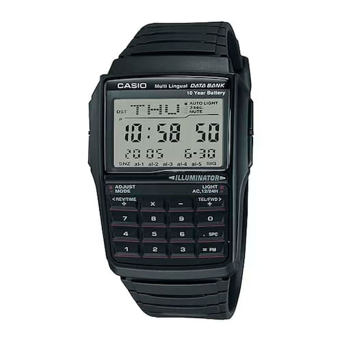 Características: Hora dual, cronômetro, sinalização a cada hora, 5 Alarmes multifuncionais, luz de fundo LED, fosforescência, calendário, calculadora de 8 dígitos, formatos de 12/24 horas, telememo Capacidade da memória: Até 25 grupos de dados, com nome de 8 caracteres e telefone de 15 dígitos Outros: Tela de memória restante, classificação automática, aceita caracteres de 13 idiomas (inglês, português, espanhol, francês, holandês, dinamarquês, alemão, italiano, sueco, polonês, romeno, turco, russo)
