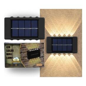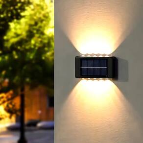 4 x Luminária De Parede Led iluminação Solar Dupla À Prova D 'Água Ideal para tornar o ambiente externo mais iluminado, trazendo segurança e boa aparência. Através do painel solar, a luminária absorve a energia solar, podendo ficar acesa por cerca de 8 horas. dependendo do período que ficou carregando IP65 à prova d'água: É resistente às intempéries, ao vento, à neve e à umidade. Possui excelente resistência ao calor e baixa temperatura. Obs: em caso de mau tempo, também pode ser normalmente Utilizado, desde que tenha bateria e esteja sendo carregada sob exposição dos raios solares Fácil de instalar: esta lâmpada de estilo moderno pode ser instalada em poucos minutos. Fixe com fita dupla-face superfície deve estar limpa e seca ou parafuso de expansão Ampla aplicação: é muito adequado para iluminar sua cerca, deck, degraus, escadas, paredes, porta da frente, varanda, quintal, jardim, passagem, entrada de automóveis, paisagem ou qualquer lugar ao ar livre que necessite de iluminação noturna. Especificação: Material: ABS Tipo de luz: 10 LED Direção da fonte de luz: para cima e para baixo Tensão: 1,2V Potência nominal: 10 W Tipo à prova d'água: IP65 Painéis solares: painéis solares 2V / 200ma Tempo de carregamento: Mais de 6hs/dia Tempo de trabalho: Até 8 horas Bateria: baterias Ni-MH 600Mah Tamanho do produto: 10 7,5 3 cm Observação: O seguinte ambiente não é adequado para instalação: 1. Locais com vidro o vidro bloqueia parte da luz do sol, afeta a intensidade da luz e afeta o carregamento da bateria 2. Fonte de iluminação local onde há qualquer fonte de luz próxima à arandela pode afetar o funcionamento, pois ela entende que o ambiente não está escuro 3. Instalação em sombra em beirais de azulejos, árvores, fios e outras obstruções acima da área onde as lâmpadas estão instaladas 4. Áreas com pouco tempo de luz a área onde a energia solar é instalada deve ser iluminada por pelo menos 6 horas Incluído no Pacote: 4x Luminária Arandela Solar 4x Kit instalação Parafusos