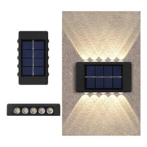 4 x Luminária De Parede Led iluminação Solar Dupla À Prova D 'Água Ideal para tornar o ambiente externo mais iluminado, trazendo segurança e boa aparência. Através do painel solar, a luminária absorve a energia solar, podendo ficar acesa por cerca de 8 horas. dependendo do período que ficou carregando IP65 à prova d'água: É resistente às intempéries, ao vento, à neve e à umidade. Possui excelente resistência ao calor e baixa temperatura. Obs: em caso de mau tempo, também pode ser normalmente Utilizado, desde que tenha bateria e esteja sendo carregada sob exposição dos raios solares Fácil de instalar: esta lâmpada de estilo moderno pode ser instalada em poucos minutos. Fixe com fita dupla-face superfície deve estar limpa e seca ou parafuso de expansão Ampla aplicação: é muito adequado para iluminar sua cerca, deck, degraus, escadas, paredes, porta da frente, varanda, quintal, jardim, passagem, entrada de automóveis, paisagem ou qualquer lugar ao ar livre que necessite de iluminação noturna. Especificação: Material: ABS Tipo de luz: 10 LED Direção da fonte de luz: para cima e para baixo Tensão: 1,2V Potência nominal: 10 W Tipo à prova d'água: IP65 Painéis solares: painéis solares 2V / 200ma Tempo de carregamento: Mais de 6hs/dia Tempo de trabalho: Até 8 horas Bateria: baterias Ni-MH 600Mah Tamanho do produto: 10 7,5 3 cm Observação: O seguinte ambiente não é adequado para instalação: 1. Locais com vidro o vidro bloqueia parte da luz do sol, afeta a intensidade da luz e afeta o carregamento da bateria 2. Fonte de iluminação local onde há qualquer fonte de luz próxima à arandela pode afetar o funcionamento, pois ela entende que o ambiente não está escuro 3. Instalação em sombra em beirais de azulejos, árvores, fios e outras obstruções acima da área onde as lâmpadas estão instaladas 4. Áreas com pouco tempo de luz a área onde a energia solar é instalada deve ser iluminada por pelo menos 6 horas Incluído no Pacote: 4x Luminária Arandela Solar 4x Kit instalação Parafusos